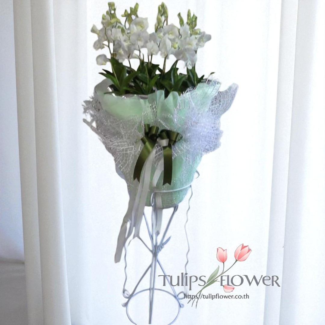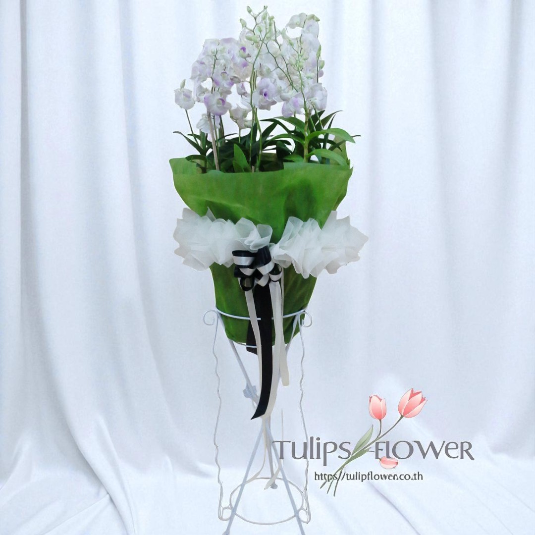 หรีดต้นกล้วยไม้ พร้อมขาแสตน (ดอกไม้อาจมีการเปลี่ยนสีตามสต๊อกของค่ะแตจะแจ้งให้ทราบก่อนค่ะ)